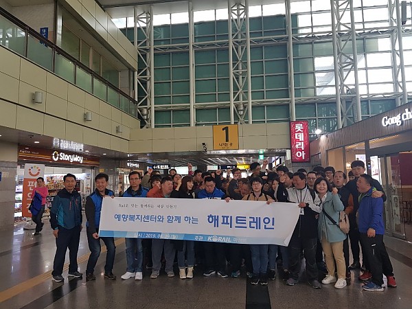 190429 해피트레인 페이지 정보 작성자 예향 작성일19-04-30 08:52 조회3,567회 댓글0건 이전글 다음글 목록 본문 예향에서는 기차를 타고 대구나들이를 다녀왔습니다. 코레일사회봉사단&주식회사씨제이티투어에서 식사(갈비탕)&간식, 아쿠아리움 관람을 지원해주셔서, 다양한 해양생물들을 구경하고 주사위 놀이, 물방울 공연 등 이벤트에 참여하며, 관람을 재밌게 즐길 수 있었습니다. 감사합니다. 댓글목록 등록된 댓글이 없습니다. 이전글 다음글 목록