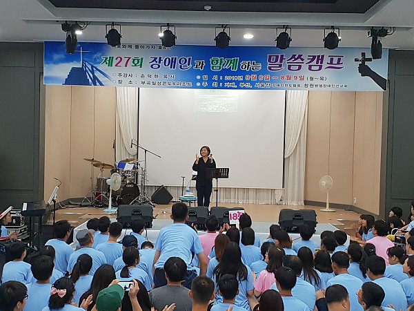 180806~180809 27회 말씀캠프 페이지 정보 작성자 예향 작성일18-08-09 19:18 조회3,541회 댓글0건 이전글 다음글 목록 본문 여호와께로 돌아가자"라는 주제로 진행자와 봉사자 그리고 장애인 친구들 총 인원 460명이 부곡온천콘도에서 3박4일간 말씀캠프를 가졌습니다. 이번에는, 장유호산나교회, 북일교회 등... 많은 교회에서 참석해 주셨습니다. 감사합니다. 댓글목록 등록된 댓글이 없습니다. 이전글 다음글 목록